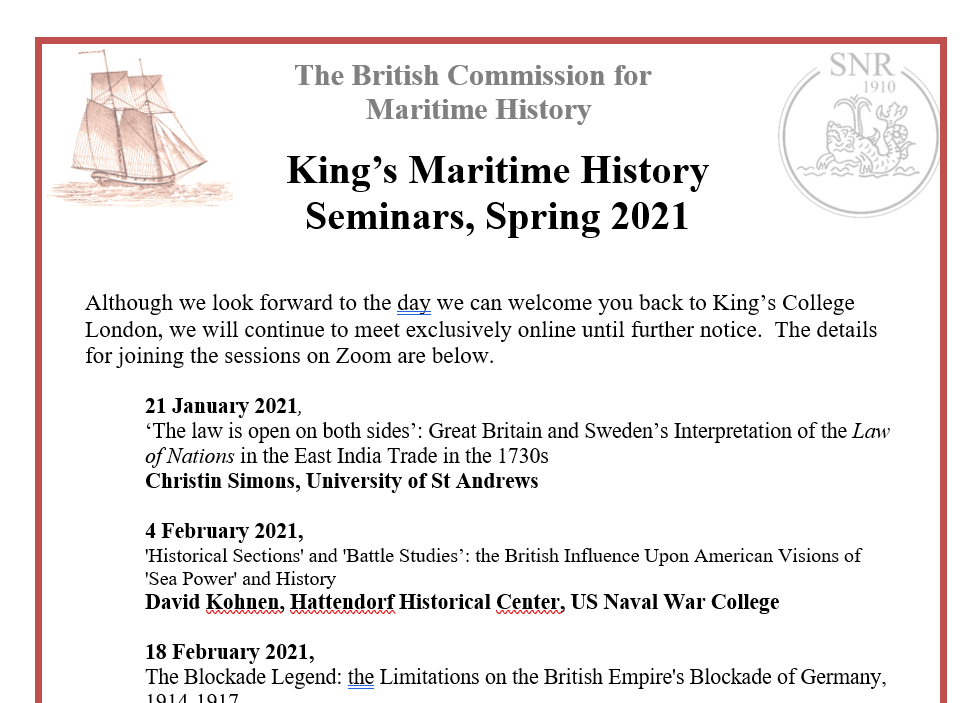 King's Seminars - Spring term 2021